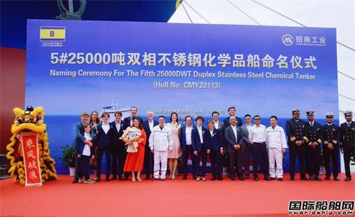 7月19日,招商工業(yè)揚(yáng)州金陵為比利時(shí)船東CMB建造的第5艘25000噸雙相不銹鋼化學(xué)品船舉行命名儀式。船東CCO Michael Saverys帶領(lǐng)家族成員出席了本次命名儀式。船東及船級(jí)社現(xiàn)場(chǎng)監(jiān)造組,高級(jí)船員也受邀參加本次儀式,共同見(jiàn)證了新船命名。