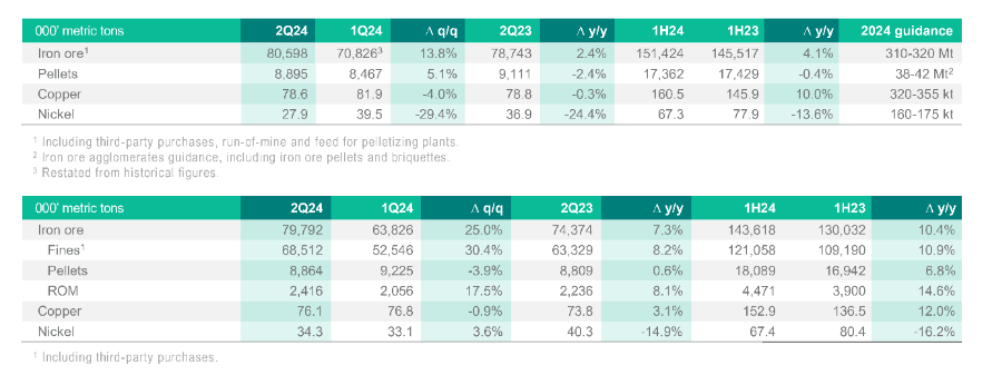 淡水河谷報告顯示,2024年第二季度,淡水河谷鐵礦石銷量同比大幅增長7.3%;S11D礦區(qū)業(yè)績持續(xù)提升,創(chuàng)下第二季度產(chǎn)量歷史新高。