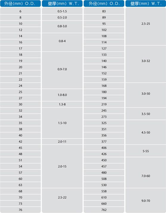 產(chǎn)品尺寸:不銹鋼圓管:外徑6mm-762mm